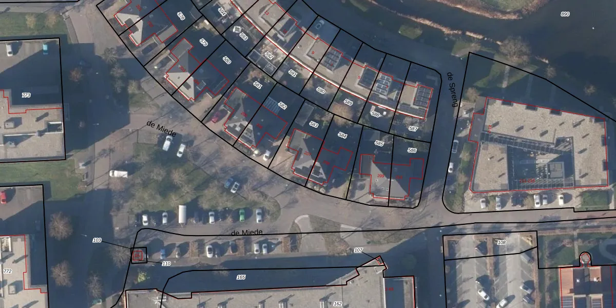Gebruik de zoekbalk of klik op een perceel voor informatie over de adressen binnen dit perceel.