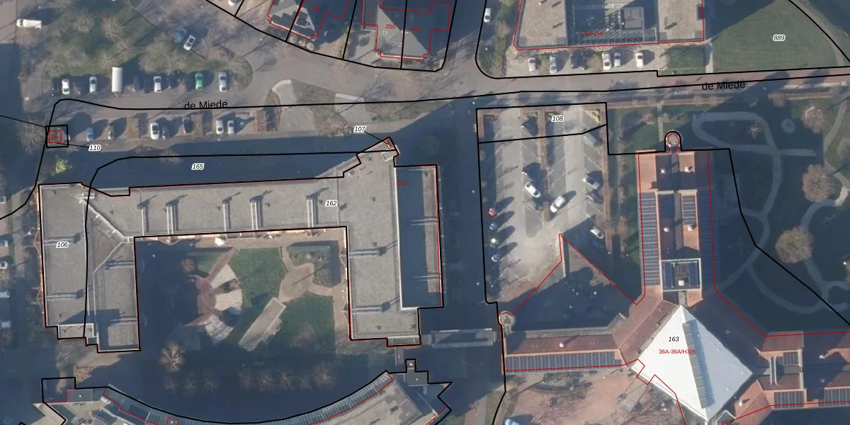 Het perceel waarop de Miede 28 staat heeft een oppervlakte van 1905 m². Dit is een zeer groot perceel. De perceeloppervlakte wordt geregistreerd door het Kadaster. Gedetailleerde informatie over de maten van dit perceel kunt u vinden in het rapport Kadastrale kaart met maatvoering van de Miede 28.