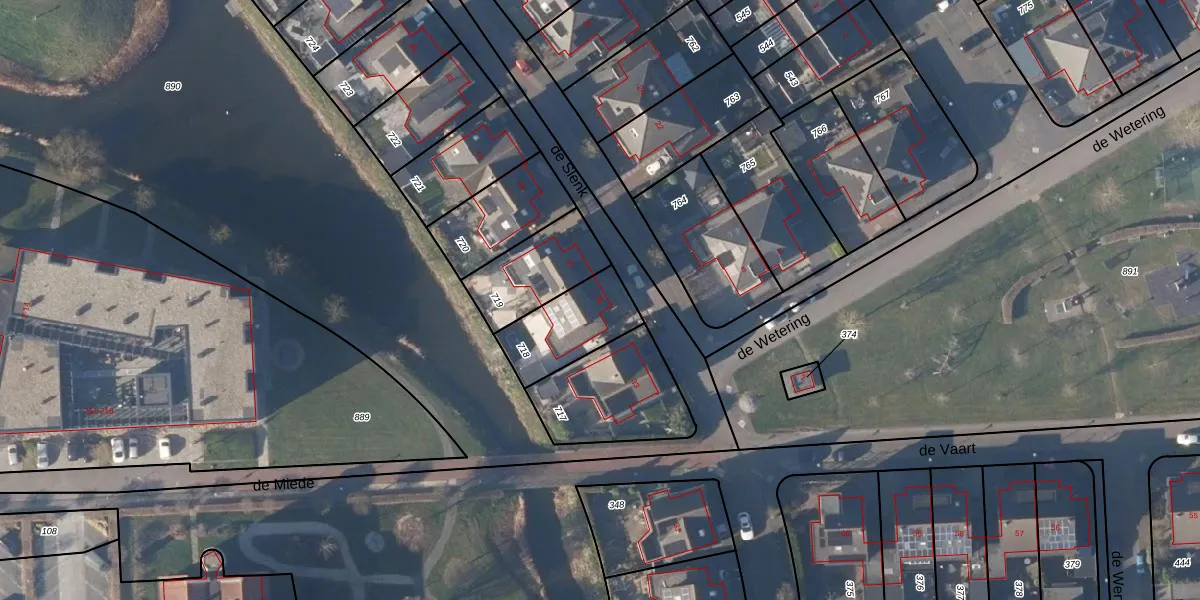 Gebruik de zoekbalk of klik op een perceel voor informatie over de adressen binnen dit perceel.