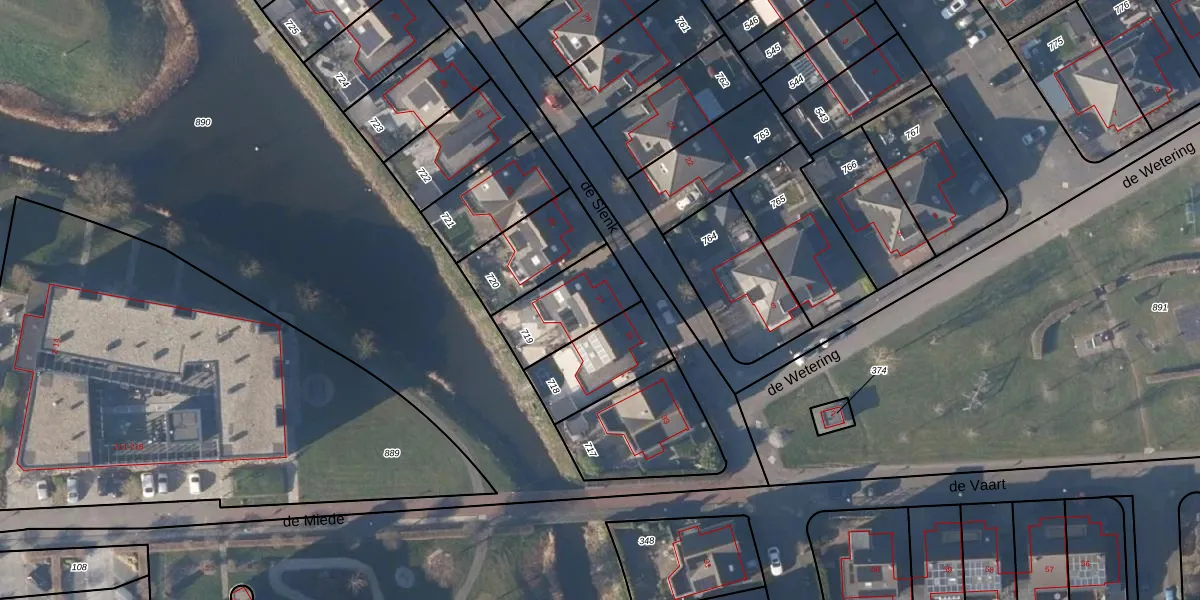 Gebruik de zoekbalk of klik op een perceel voor informatie over de adressen binnen dit perceel.