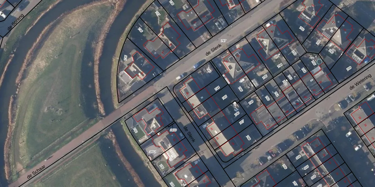 Het perceel waarop de Slenk 48 staat heeft een oppervlakte van 249 m². Dit is een middelgroot perceel. De perceeloppervlakte wordt geregistreerd door het Kadaster. Gedetailleerde informatie over de maten van dit perceel kunt u vinden in het rapport Kadastrale kaart met maatvoering van de Slenk 48.