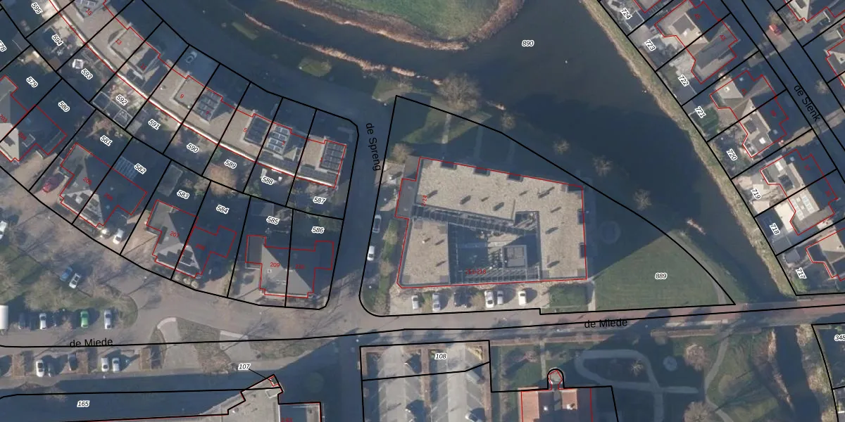 Het perceel waarop de Spreng 6 staat heeft een oppervlakte van 2760 m². Dit is een zeer groot perceel. De perceeloppervlakte wordt geregistreerd door het Kadaster. Gedetailleerde informatie over de maten van dit perceel kunt u vinden in het rapport Kadastrale kaart met maatvoering van de Spreng 6.