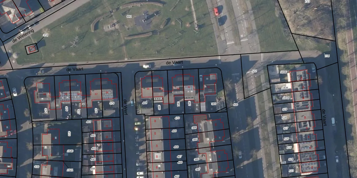 de Vaart 53 is gelegen op kadastraal perceel SGN00K381. Deze kadastrale aanduiding is uniek en wordt gebruikt door het Kadaster om eigendomsrechten en andere zakelijke rechten vast te leggen. Het perceel maakt onderdeel uit van de kadastrale gemeente Schagen.