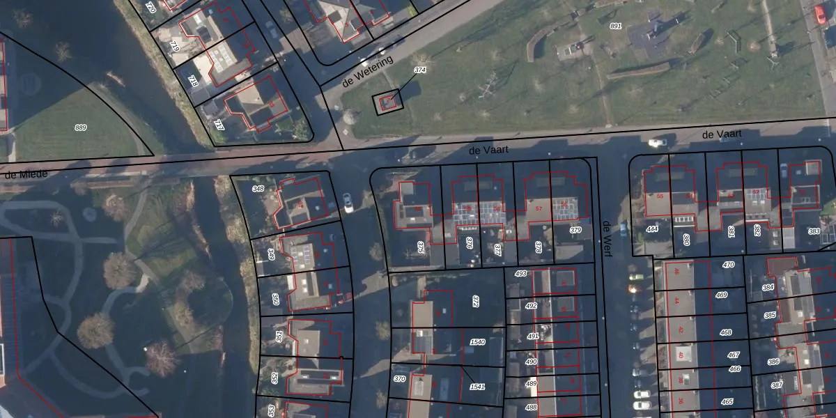 Het perceel waarop de Vaart 60 staat heeft een oppervlakte van 383 m². Dit is een groot perceel. De perceeloppervlakte wordt geregistreerd door het Kadaster. Gedetailleerde informatie over de maten van dit perceel kunt u vinden in het rapport Kadastrale kaart met maatvoering van de Vaart 60.