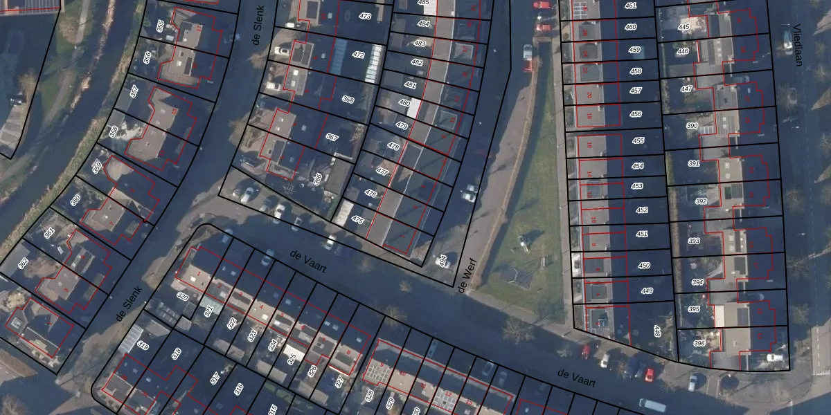 Gebruik de zoekbalk of klik op een perceel voor informatie over de adressen binnen dit perceel.