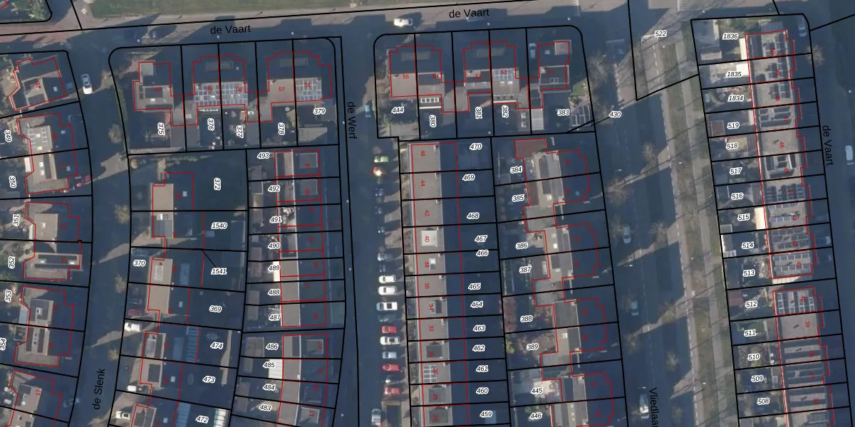 Gebruik de zoekbalk of klik op een perceel voor informatie over de adressen binnen dit perceel.