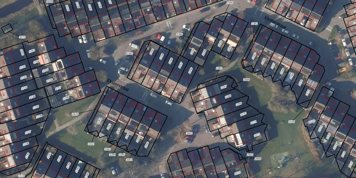 Het perceel waarop Eksterstraat 57 staat heeft een oppervlakte van 151 m². Dit is een middelgroot perceel. De perceeloppervlakte wordt geregistreerd door het Kadaster. Gedetailleerde informatie over de maten van dit perceel kunt u vinden in het rapport Kadastrale kaart met maatvoering van Eksterstraat 57.