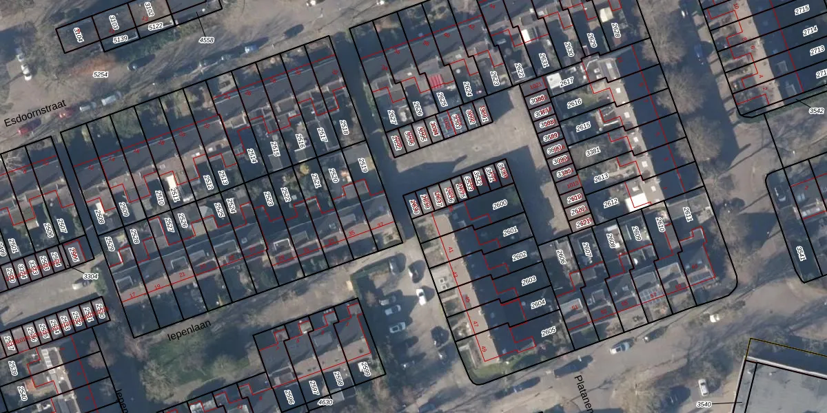 Het perceel waarop Esdoornstraat 1001 staat heeft een oppervlakte van 19 m². Dit is een klein perceel. De perceeloppervlakte wordt geregistreerd door het Kadaster. Gedetailleerde informatie over de maten van dit perceel kunt u vinden in het rapport Kadastrale kaart met maatvoering van Esdoornstraat 1001.