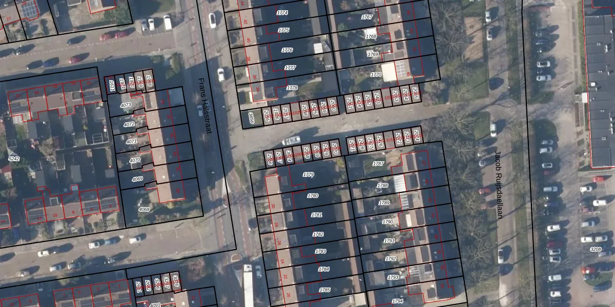 Het perceel waarop Frans Halsstraat 1005 staat heeft een oppervlakte van 18 m². Dit is een klein perceel. De perceeloppervlakte wordt geregistreerd door het Kadaster. Gedetailleerde informatie over de maten van dit perceel kunt u vinden in het rapport Kadastrale kaart met maatvoering van Frans Halsstraat 1005.