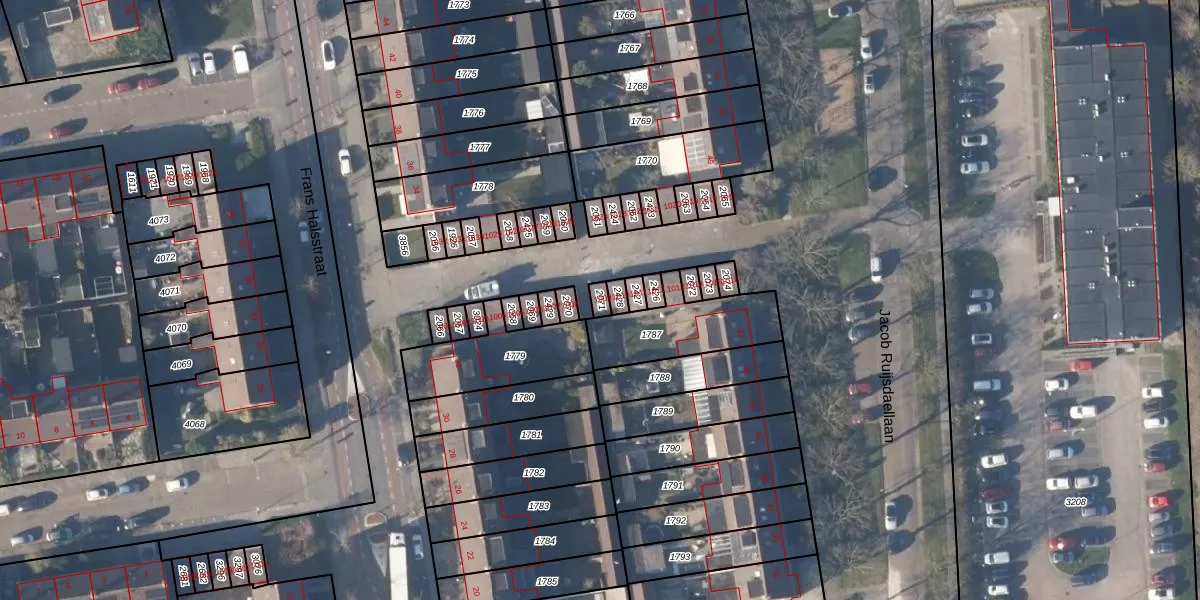 Het perceel waarop Frans Halsstraat 1009 staat heeft een oppervlakte van 19 m². Dit is een klein perceel. De perceeloppervlakte wordt geregistreerd door het Kadaster. Gedetailleerde informatie over de maten van dit perceel kunt u vinden in het rapport Kadastrale kaart met maatvoering van Frans Halsstraat 1009.