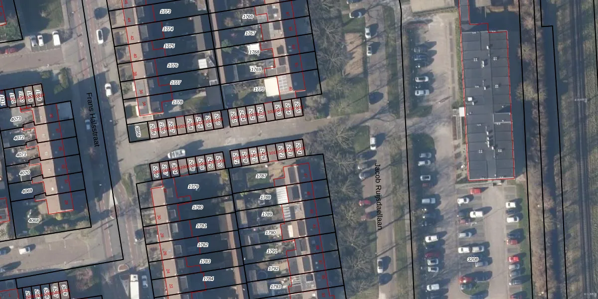 Het perceel waarop Frans Halsstraat 1016 staat heeft een oppervlakte van 19 m². Dit is een klein perceel. De perceeloppervlakte wordt geregistreerd door het Kadaster. Gedetailleerde informatie over de maten van dit perceel kunt u vinden in het rapport Kadastrale kaart met maatvoering van Frans Halsstraat 1016.