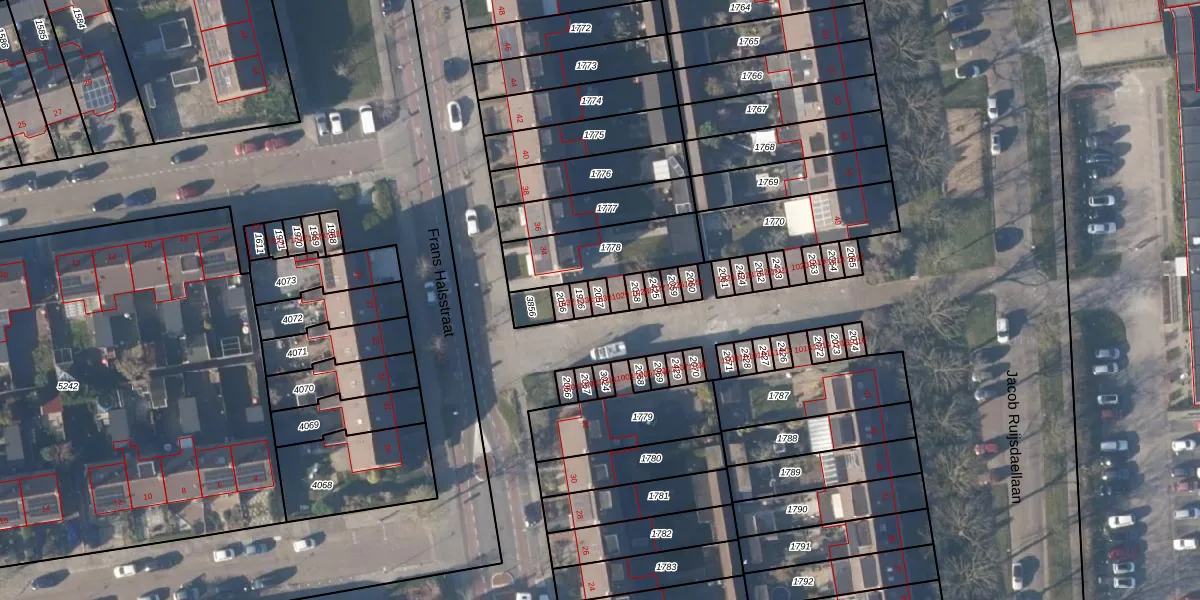 Het perceel waarop Frans Halsstraat 1030 staat heeft een oppervlakte van 18 m². Dit is een klein perceel. De perceeloppervlakte wordt geregistreerd door het Kadaster. Gedetailleerde informatie over de maten van dit perceel kunt u vinden in het rapport Kadastrale kaart met maatvoering van Frans Halsstraat 1030.