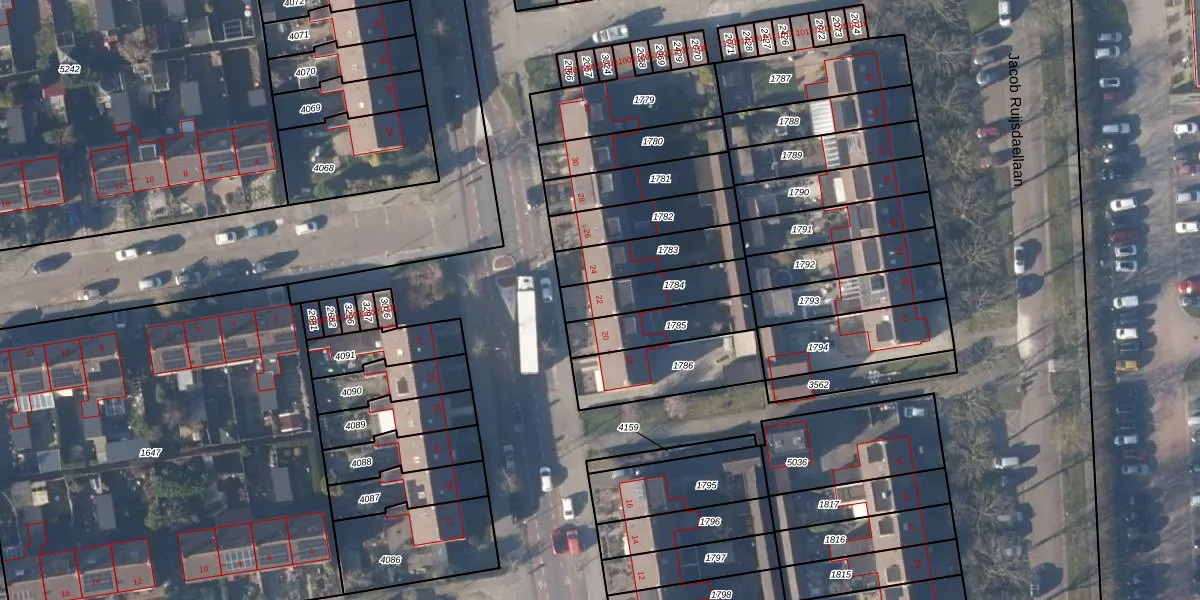 Gebruik de zoekbalk of klik op een perceel voor informatie over de adressen binnen dit perceel.