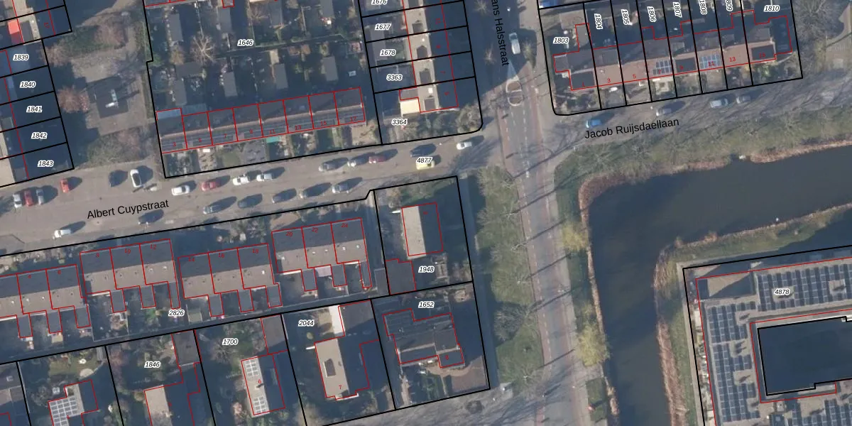 Gebruik de zoekbalk of klik op een perceel voor informatie over de adressen binnen dit perceel.
