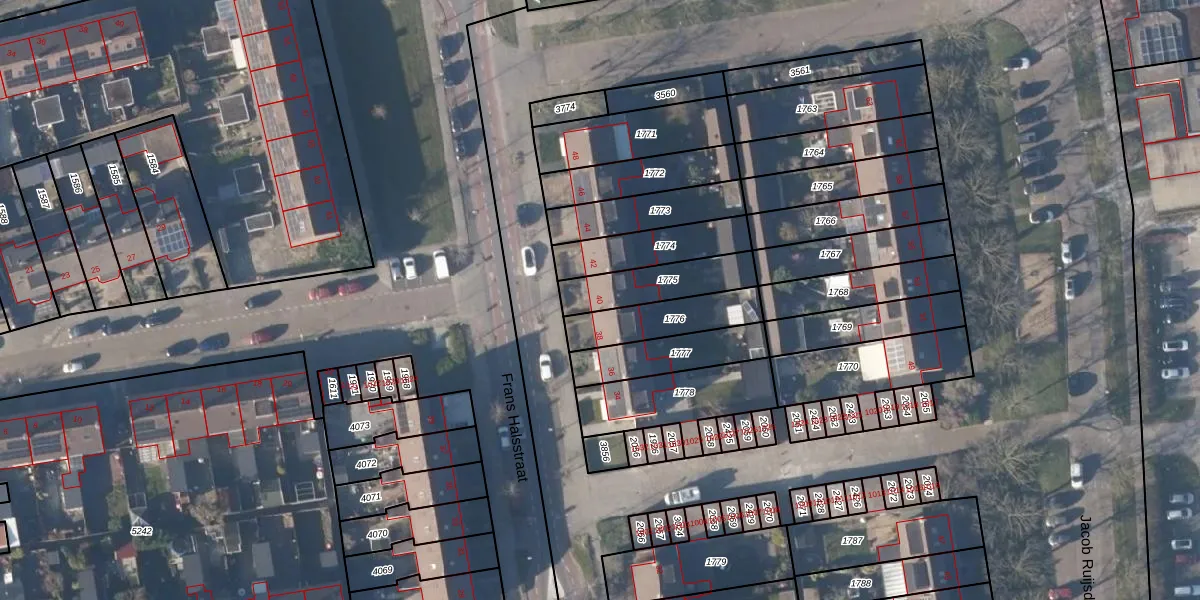 Het perceel waarop Frans Halsstraat 40 staat heeft een oppervlakte van 198 m². Dit is een middelgroot perceel. De perceeloppervlakte wordt geregistreerd door het Kadaster. Gedetailleerde informatie over de maten van dit perceel kunt u vinden in het rapport Kadastrale kaart met maatvoering van Frans Halsstraat 40.