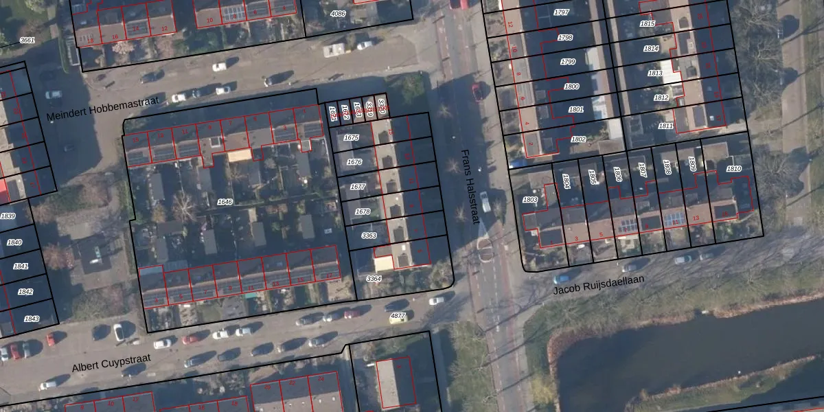 Gebruik de zoekbalk of klik op een perceel voor informatie over de adressen binnen dit perceel.