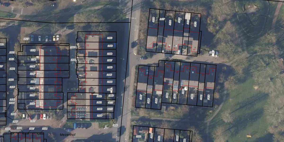 Gebruik de zoekbalk of klik op een perceel voor informatie over de adressen binnen dit perceel.