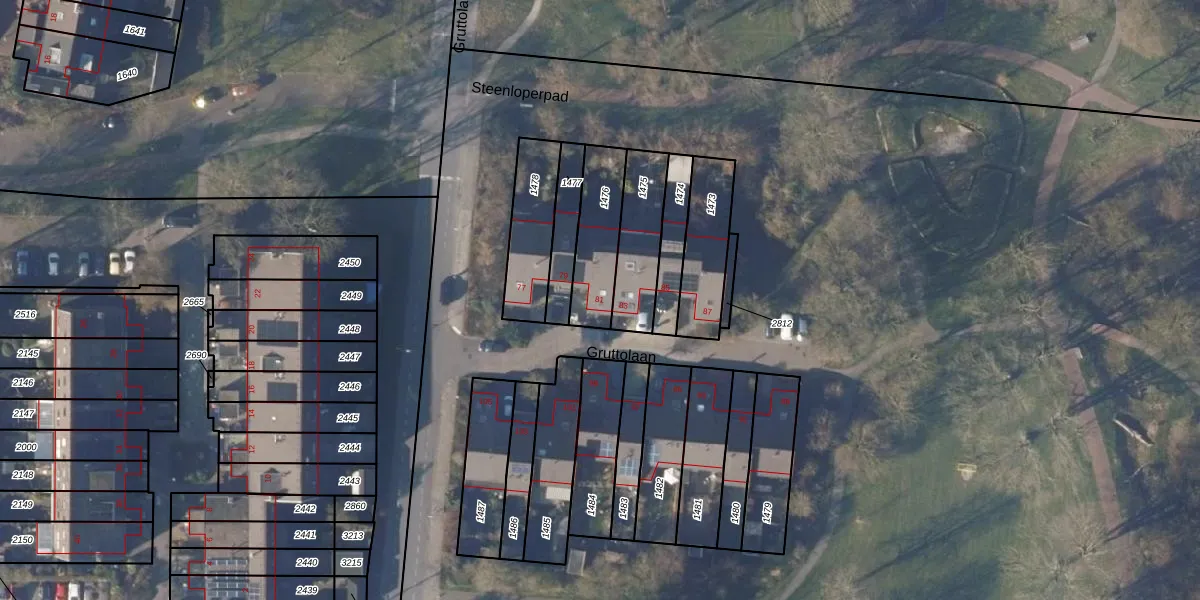 Gebruik de zoekbalk of klik op een perceel voor informatie over de adressen binnen dit perceel.