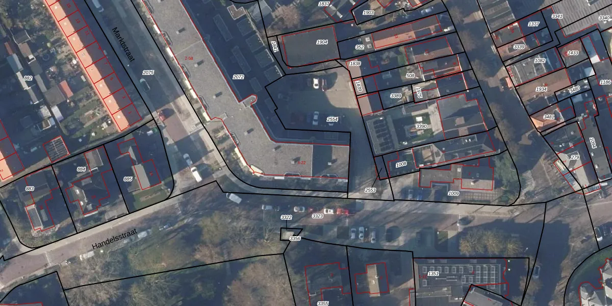 Het perceel waarop Handelsstraat 16 staat heeft een oppervlakte van 2452 m². Dit is een zeer groot perceel. De perceeloppervlakte wordt geregistreerd door het Kadaster. Gedetailleerde informatie over de maten van dit perceel kunt u vinden in het rapport Kadastrale kaart met maatvoering van Handelsstraat 16.