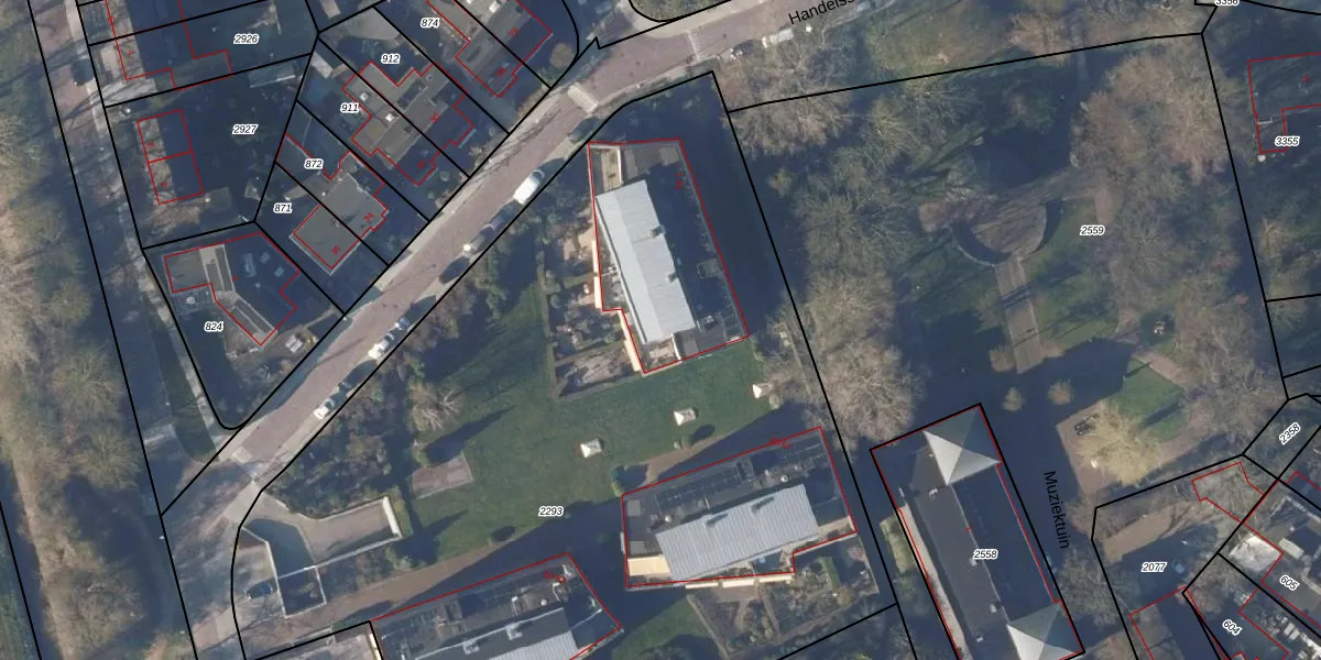 Het perceel waarop Handelsstraat 31 staat heeft een oppervlakte van 6230 m². Dit is een zeer groot perceel. De perceeloppervlakte wordt geregistreerd door het Kadaster. Gedetailleerde informatie over de maten van dit perceel kunt u vinden in het rapport Kadastrale kaart met maatvoering van Handelsstraat 31.