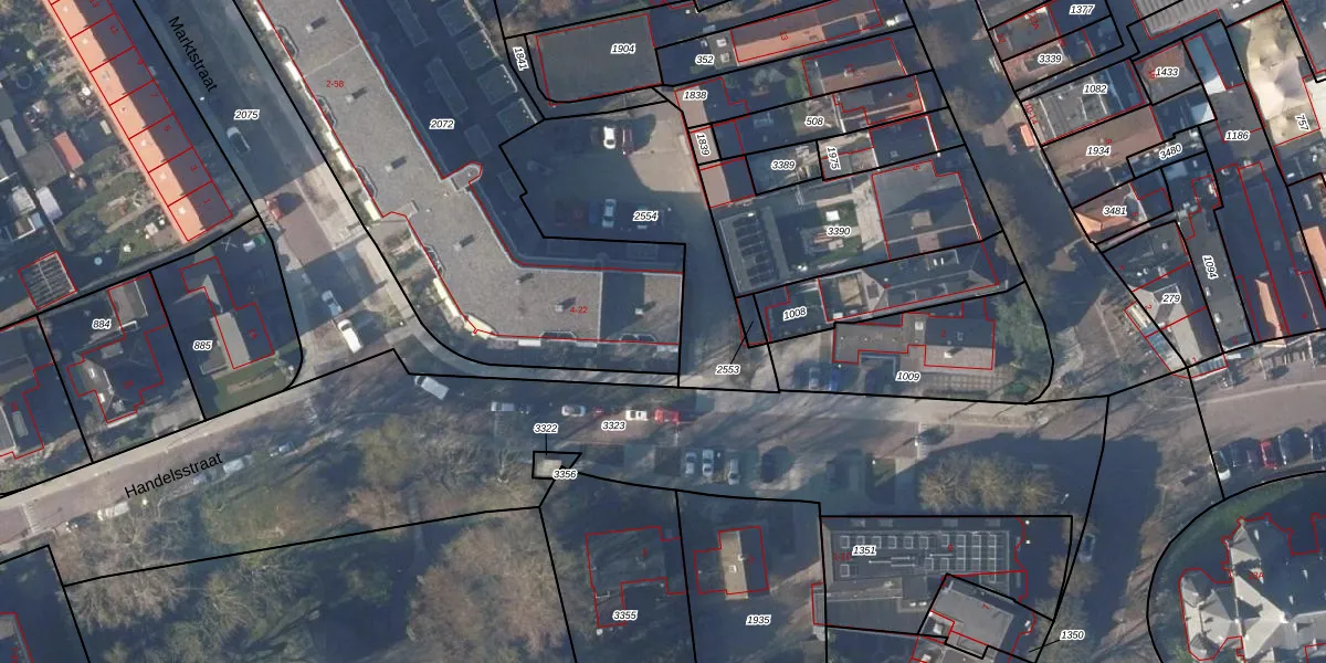 Het perceel waarop Handelsstraat 4 staat heeft een oppervlakte van 2452 m². Dit is een zeer groot perceel. De perceeloppervlakte wordt geregistreerd door het Kadaster. Gedetailleerde informatie over de maten van dit perceel kunt u vinden in het rapport Kadastrale kaart met maatvoering van Handelsstraat 4.