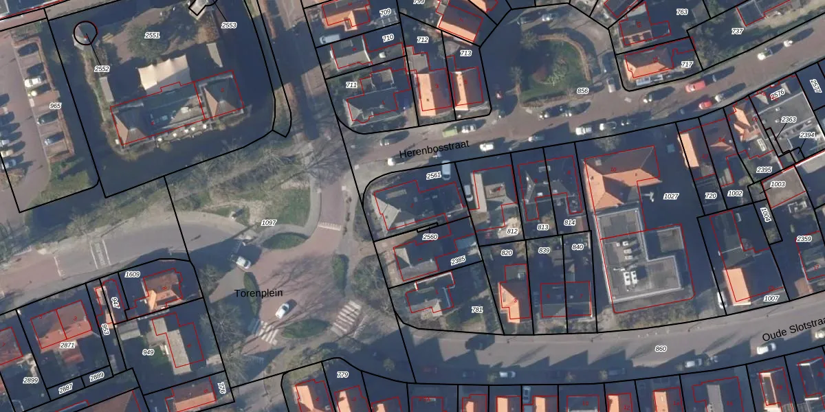 Gebruik de zoekbalk of klik op een perceel voor informatie over de adressen binnen dit perceel.