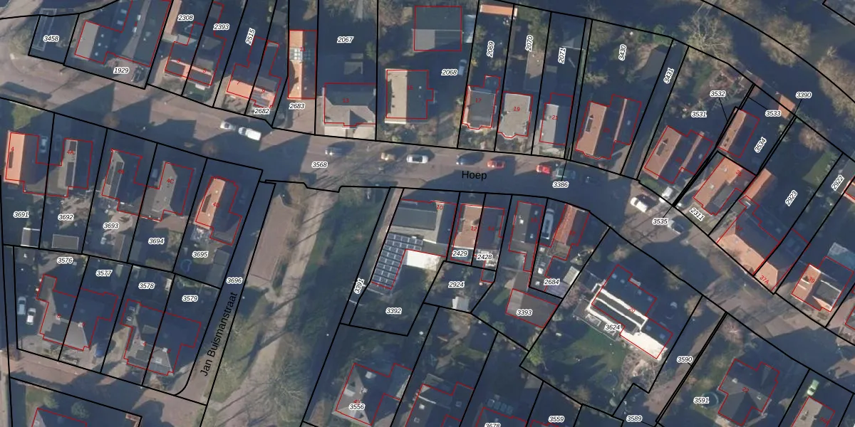 Gebruik de zoekbalk of klik op een perceel voor informatie over de adressen binnen dit perceel.