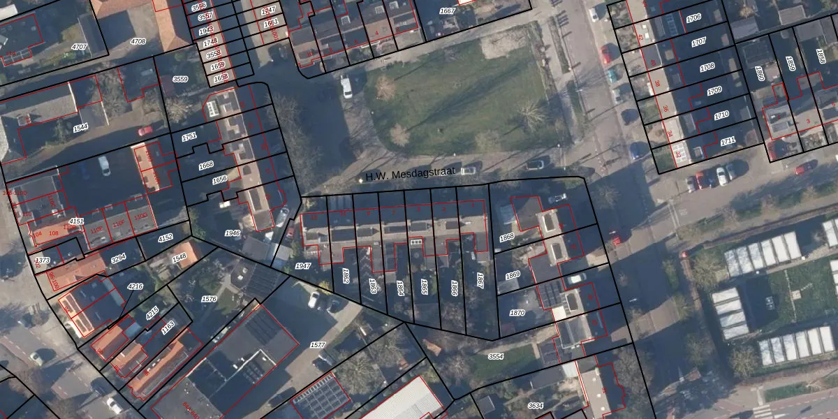 Gebruik de zoekbalk of klik op een perceel voor informatie over de adressen binnen dit perceel.