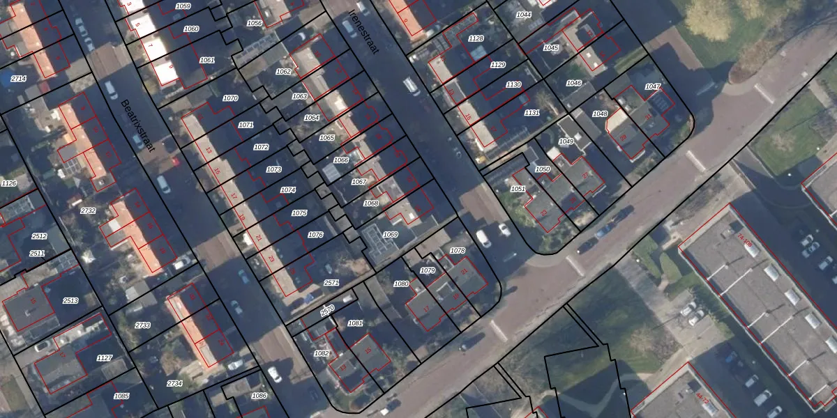 Gebruik de zoekbalk of klik op een perceel voor informatie over de adressen binnen dit perceel.