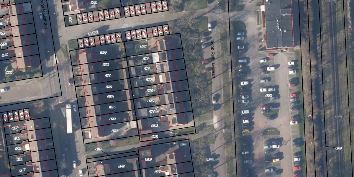 Gebruik de zoekbalk of klik op een perceel voor informatie over de adressen binnen dit perceel.
