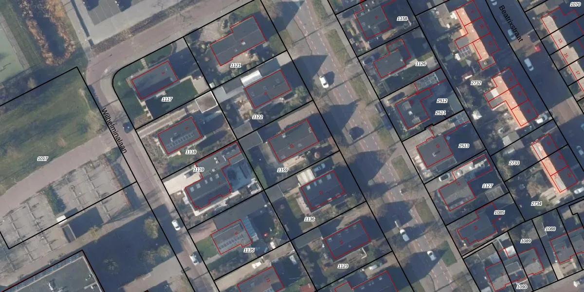 Gebruik de zoekbalk of klik op een perceel voor informatie over de adressen binnen dit perceel.