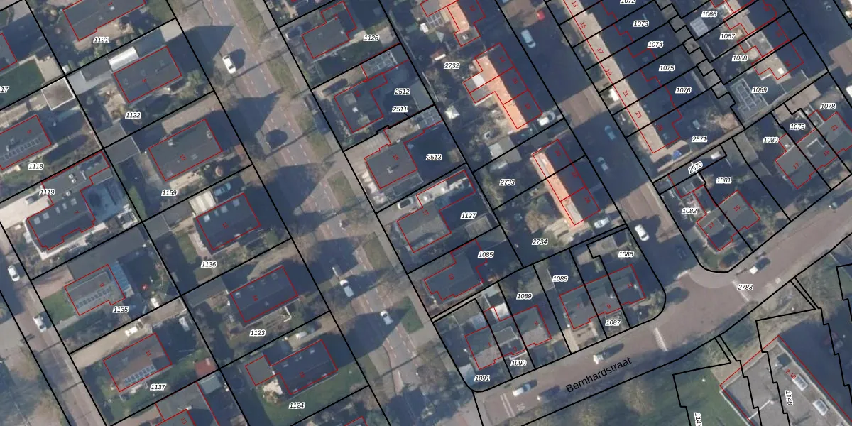 Gebruik de zoekbalk of klik op een perceel voor informatie over de adressen binnen dit perceel.