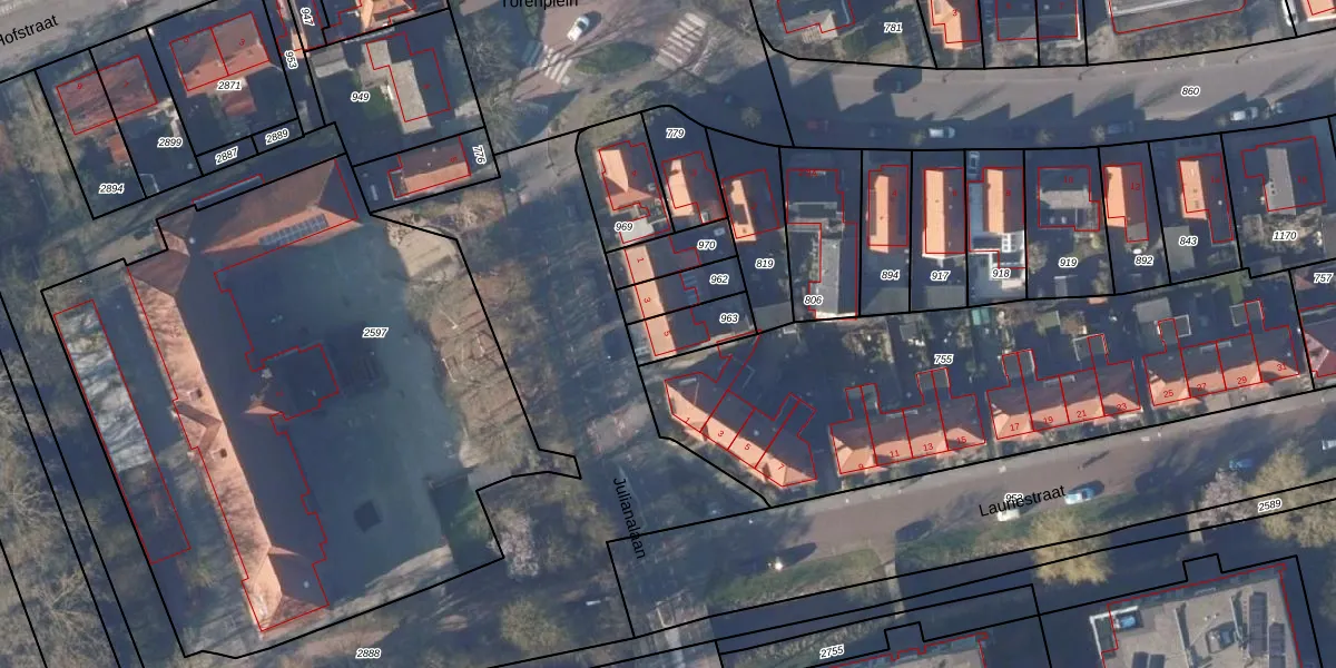 Gebruik de zoekbalk of klik op een perceel voor informatie over de adressen binnen dit perceel.