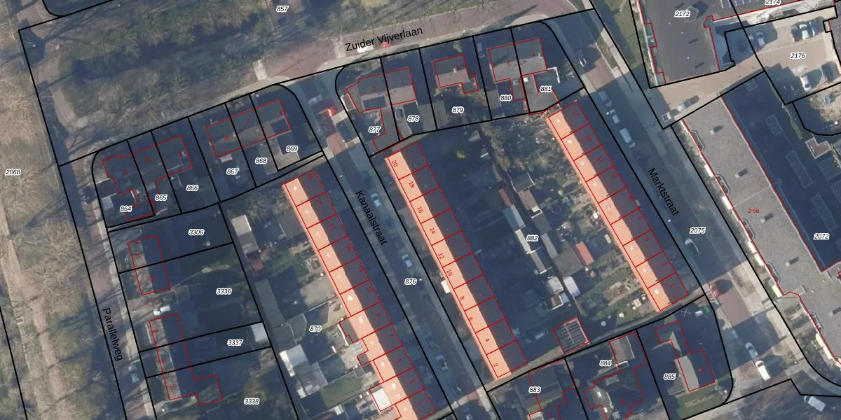 Het perceel waarop Kanaalstraat 16 staat heeft een oppervlakte van 3294 m². Dit is een zeer groot perceel. De perceeloppervlakte wordt geregistreerd door het Kadaster. Gedetailleerde informatie over de maten van dit perceel kunt u vinden in het rapport Kadastrale kaart met maatvoering van Kanaalstraat 16.