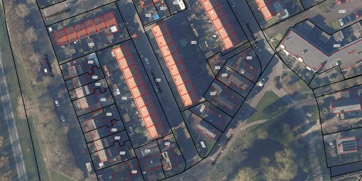 Het perceel waarop Kanaalstraat 26 staat heeft een oppervlakte van 2393 m². Dit is een zeer groot perceel. De perceeloppervlakte wordt geregistreerd door het Kadaster. Gedetailleerde informatie over de maten van dit perceel kunt u vinden in het rapport Kadastrale kaart met maatvoering van Kanaalstraat 26.