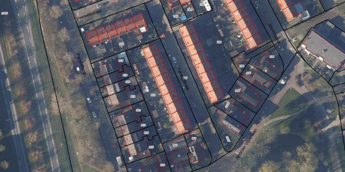 Het perceel waarop Kanaalstraat 31 staat heeft een oppervlakte van 1296 m². Dit is een zeer groot perceel. De perceeloppervlakte wordt geregistreerd door het Kadaster. Gedetailleerde informatie over de maten van dit perceel kunt u vinden in het rapport Kadastrale kaart met maatvoering van Kanaalstraat 31.