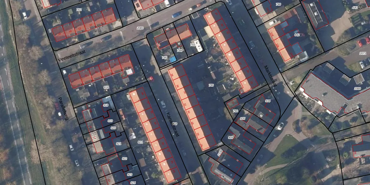 Het perceel waarop Kanaalstraat 34 staat heeft een oppervlakte van 2393 m². Dit is een zeer groot perceel. De perceeloppervlakte wordt geregistreerd door het Kadaster. Gedetailleerde informatie over de maten van dit perceel kunt u vinden in het rapport Kadastrale kaart met maatvoering van Kanaalstraat 34.