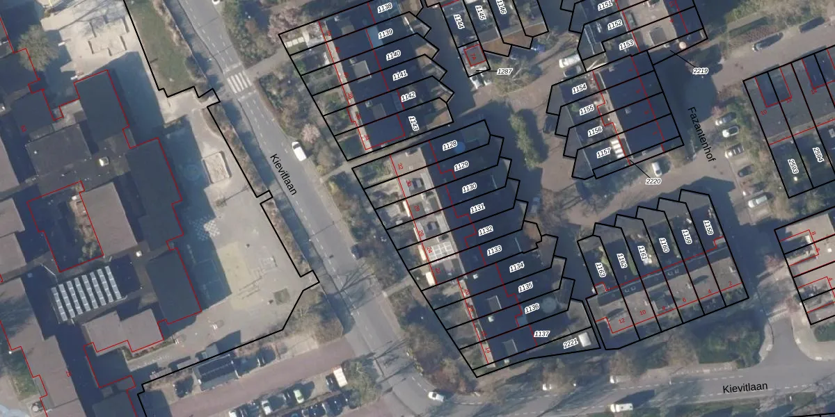 Gebruik de zoekbalk of klik op een perceel voor informatie over de adressen binnen dit perceel.