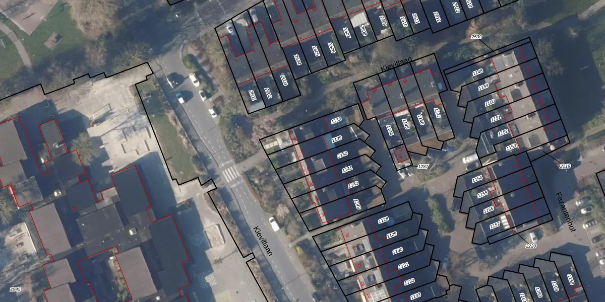 Gebruik de zoekbalk of klik op een perceel voor informatie over de adressen binnen dit perceel.