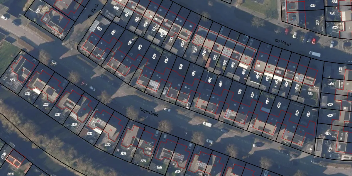 Kogerlaan 24 is gelegen op kadastraal perceel SGN00K313. Deze kadastrale aanduiding is uniek en wordt gebruikt door het Kadaster om eigendomsrechten en andere zakelijke rechten vast te leggen. Het perceel maakt onderdeel uit van de kadastrale gemeente Schagen.