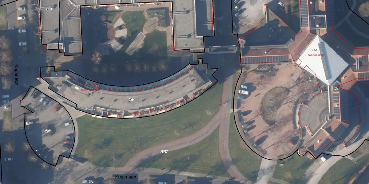 Het perceel waarop Kogerlaan 36-B-90 staat heeft een oppervlakte van 1580 m². Dit is een zeer groot perceel. De perceeloppervlakte wordt geregistreerd door het Kadaster. Gedetailleerde informatie over de maten van dit perceel kunt u vinden in het rapport Kadastrale kaart met maatvoering van Kogerlaan 36-B-90.