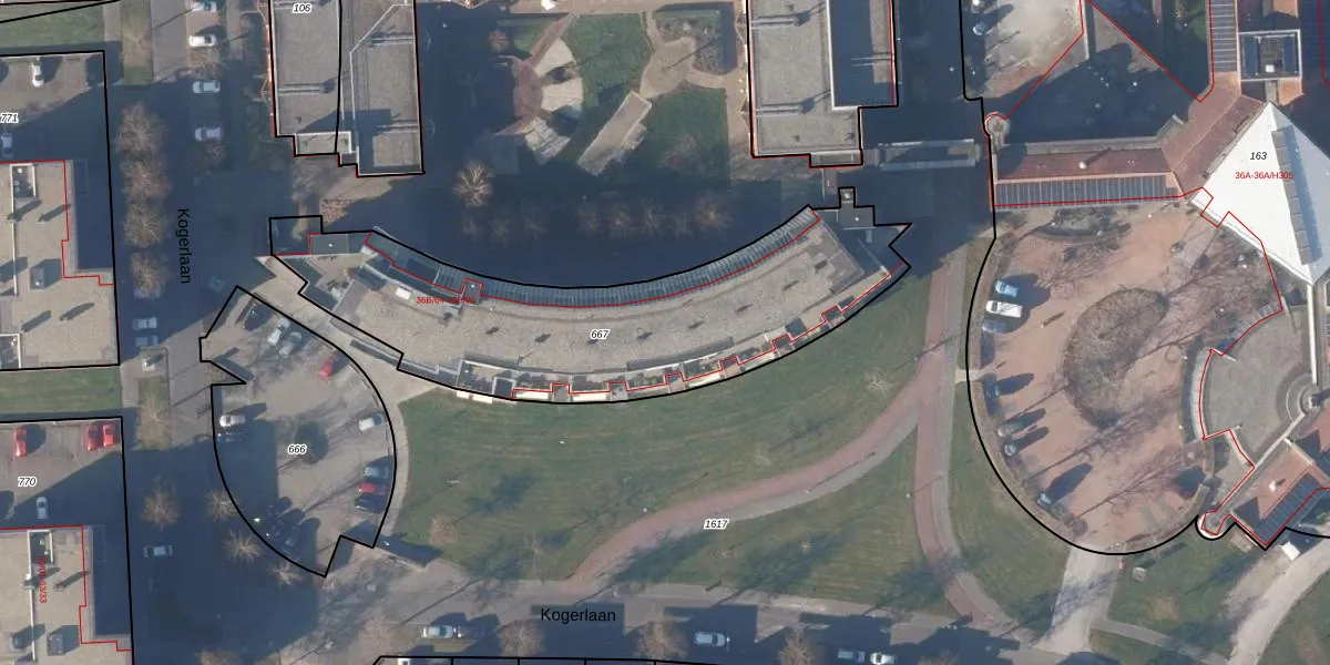 Het perceel waarop Kogerlaan 36-B-78 staat heeft een oppervlakte van 1580 m². Dit is een zeer groot perceel. De perceeloppervlakte wordt geregistreerd door het Kadaster. Gedetailleerde informatie over de maten van dit perceel kunt u vinden in het rapport Kadastrale kaart met maatvoering van Kogerlaan 36-B-78.