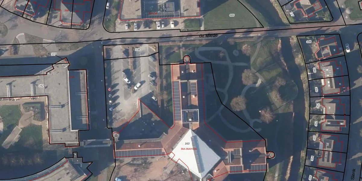 Het perceel waarop het adres ligt is SGN00-K-163. De afkorting 'SGN00' staat voor kadastrale gemeente Schagen. De gemiddelde perceeloppervlakte in de kadastrale gemeente Schagen is 1963,38 m². Dit perceel is met zijn 7685 m² dus groter dan gemiddeld. De grootste perceeloppervlakte in de kadastrale gemeente is 40,0 ha. De kleinste oppervlakte bedraagt 0 m². Op het perceel zijn 110 adressen aanwezig. In de Basisregistratie Kadaster (BRK) werden de grenzen van het perceel geregistreerd op 11-12-2006.