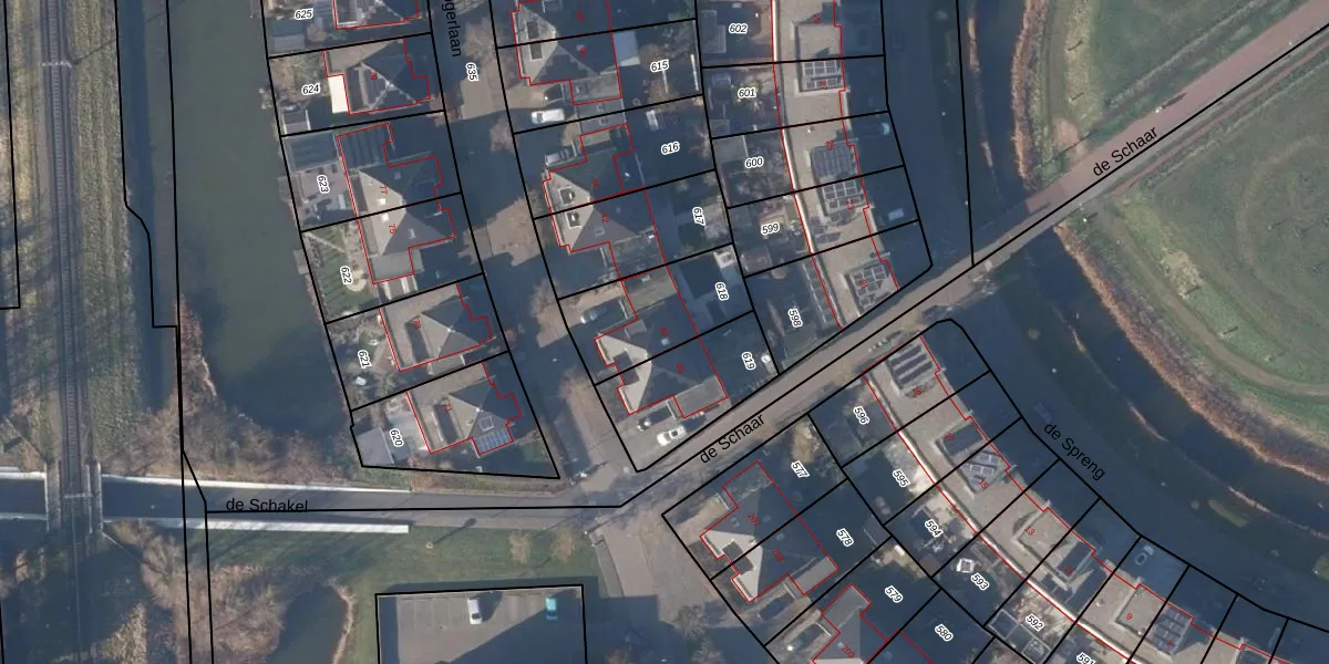 Gebruik de zoekbalk of klik op een perceel voor informatie over de adressen binnen dit perceel.