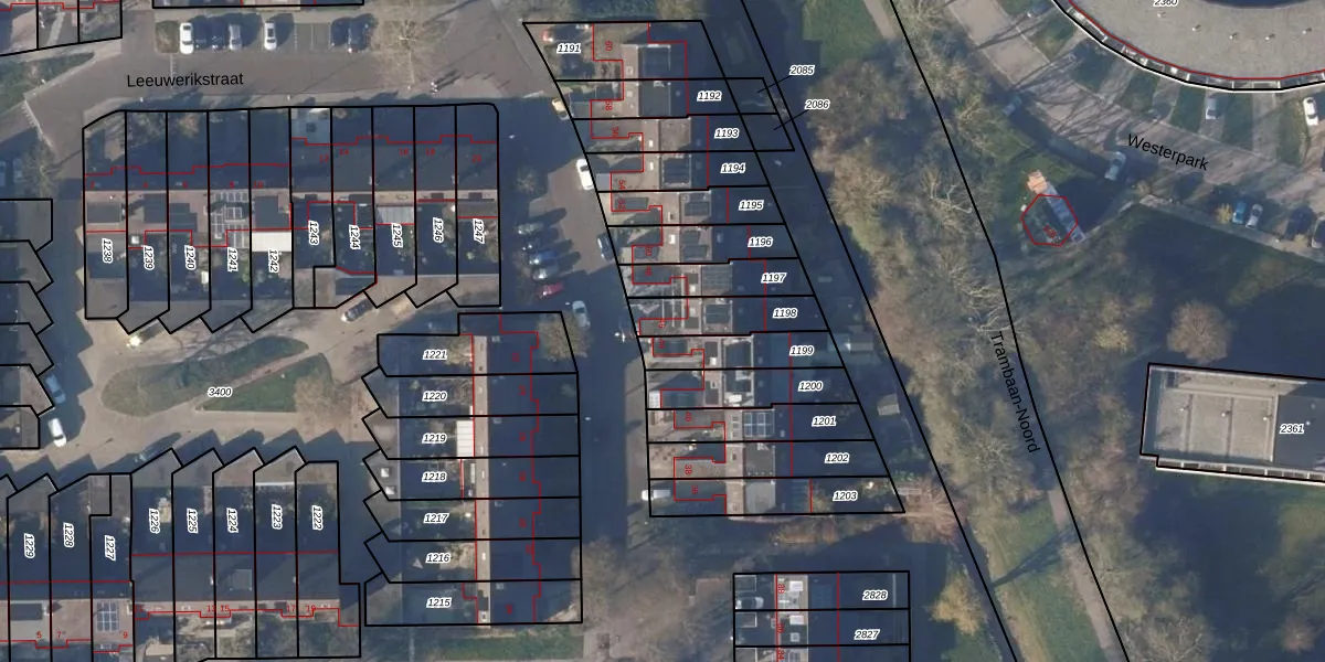 Gebruik de zoekbalk of klik op een perceel voor informatie over de adressen binnen dit perceel.