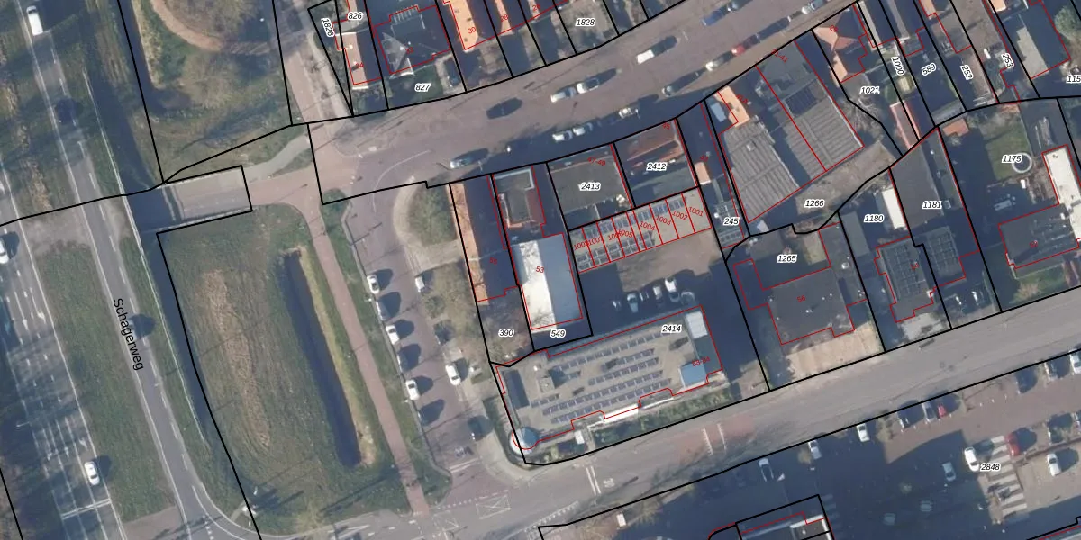 Gebruik de zoekbalk of klik op een perceel voor informatie over de adressen binnen dit perceel.