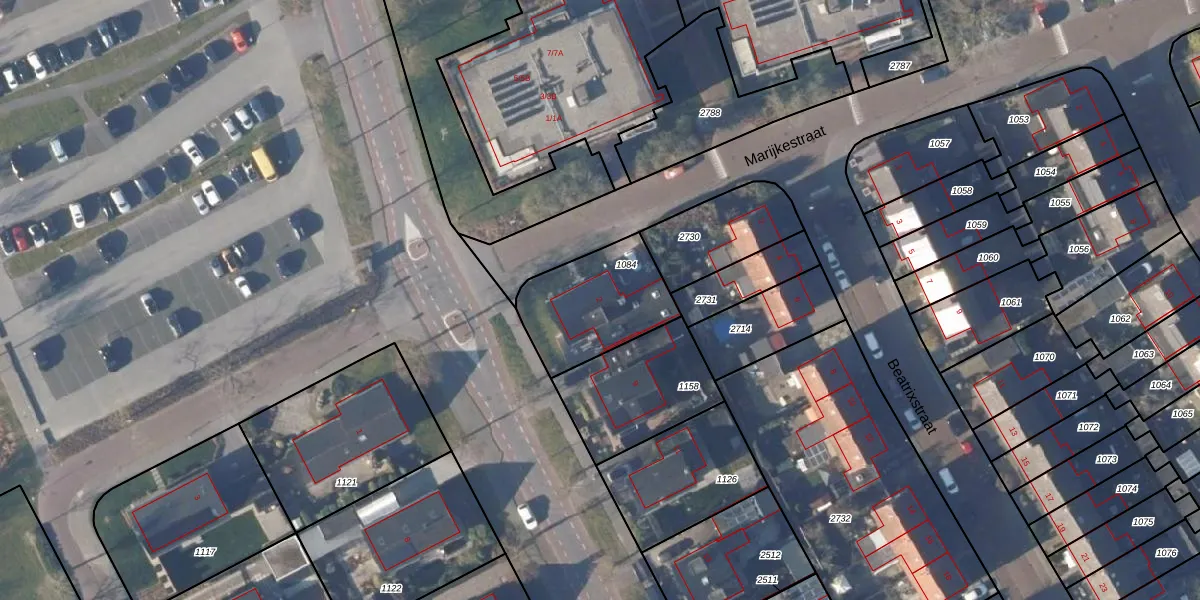Het perceel waarop Marijkestraat 2 staat heeft een oppervlakte van 383 m². Dit is een groot perceel. De perceeloppervlakte wordt geregistreerd door het Kadaster. Gedetailleerde informatie over de maten van dit perceel kunt u vinden in het rapport Kadastrale kaart met maatvoering van Marijkestraat 2.