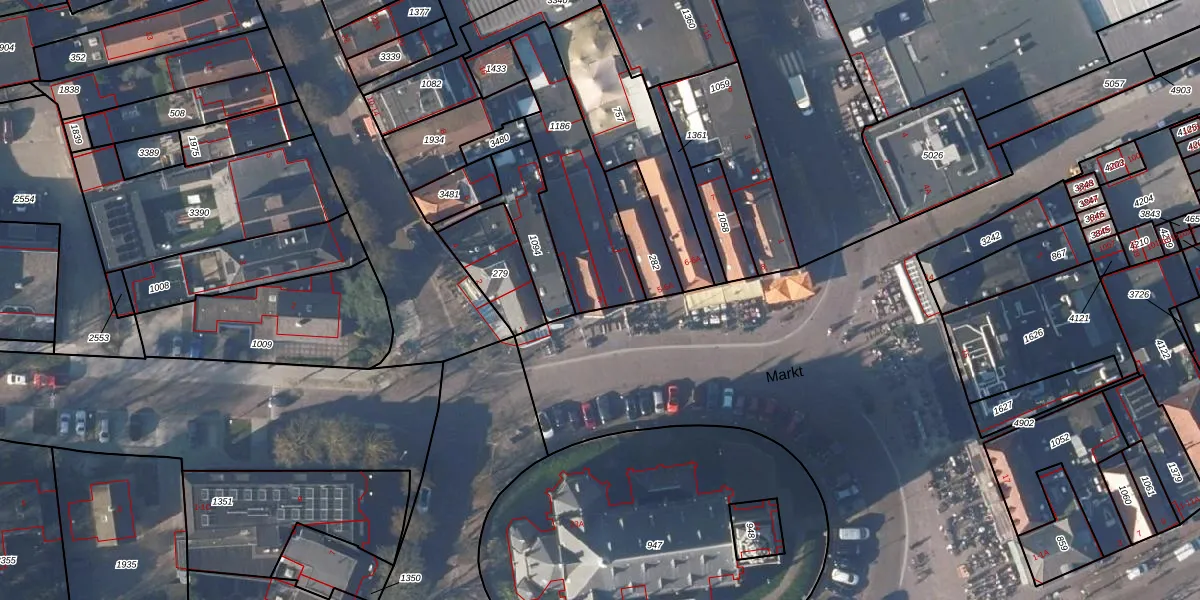 Het perceel waarop Markt 3 staat heeft een oppervlakte van 468 m². Dit is een groot perceel. De perceeloppervlakte wordt geregistreerd door het Kadaster. Gedetailleerde informatie over de maten van dit perceel kunt u vinden in het rapport Kadastrale kaart met maatvoering van Markt 3.