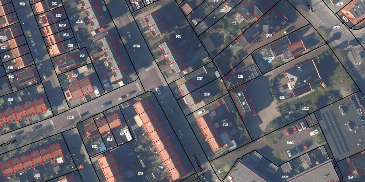 Het perceel waarop Marktstraat 112 staat heeft een oppervlakte van 275 m². Dit is een middelgroot perceel. De perceeloppervlakte wordt geregistreerd door het Kadaster. Gedetailleerde informatie over de maten van dit perceel kunt u vinden in het rapport Kadastrale kaart met maatvoering van Marktstraat 112.