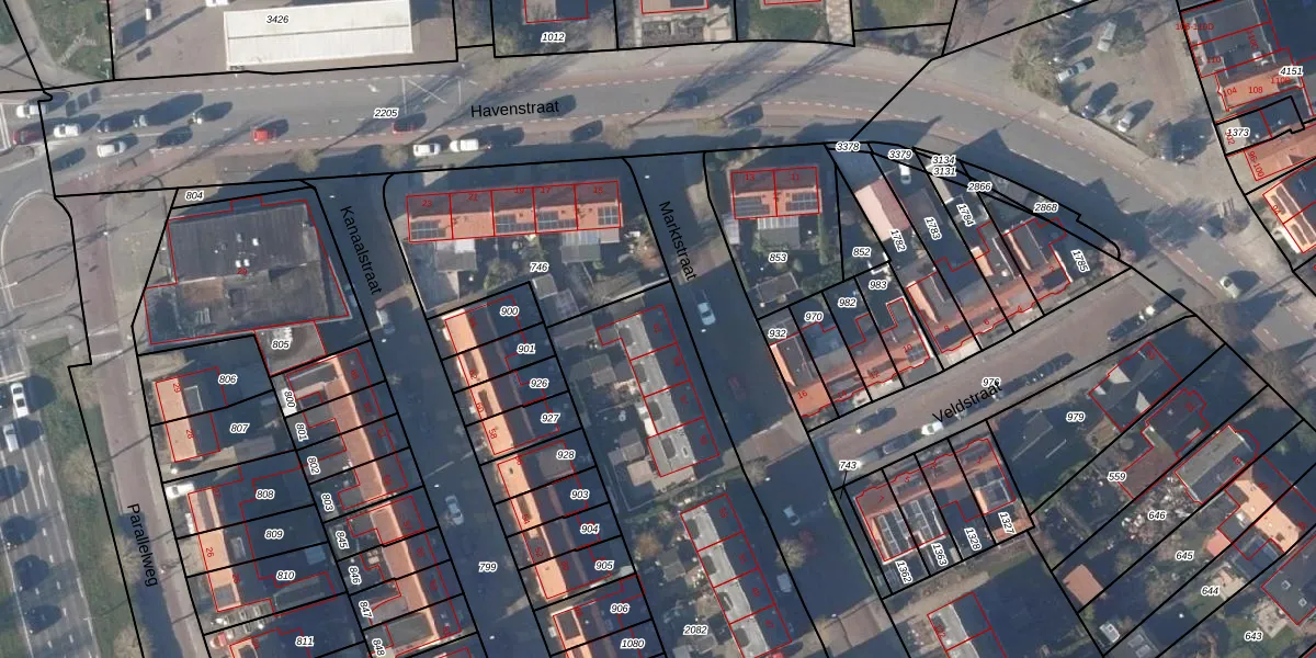 Het perceel waarop Marktstraat 61 staat heeft een oppervlakte van 1917 m². Dit is een zeer groot perceel. De perceeloppervlakte wordt geregistreerd door het Kadaster. Gedetailleerde informatie over de maten van dit perceel kunt u vinden in het rapport Kadastrale kaart met maatvoering van Marktstraat 61.
